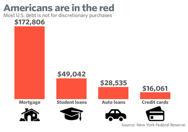 A livello nazionale, sommando le tre voci (mutui, auto e studio) ed escludendo le carte di credito, il totale del debito privato è salito dagli 11,7 trilioni di dollari del 2010 ai $12,4 del 2016.
