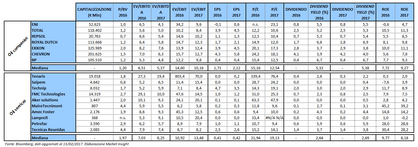 Diamo uno sguardo ai multipli del settore oil&gas. Lasciamo spazio ai numeri e alla loro capacità di sintesi, ricordando che ogni singola società ha proprie peculiarità e, pertanto, l’attività di selezione non può prescindere dall’approfondimento di ogni singolo tema di investimento.
