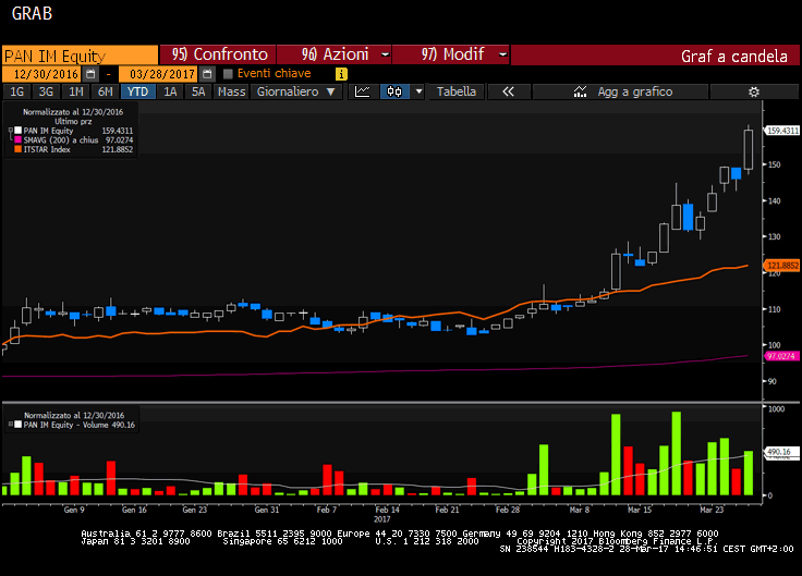 Il titolo della multinazionale emiliana brilla in Borsa e intorno alle 14.50 guadagna circa il 9,5% a 5,36 euro con 247 mila volumi scambiati sovra-performando il mercato di riferimento, Indice Star Italia, di oltre il 9 per cento (+0,5%). Nonostante non vi sono news dal lato dei fondamentali.