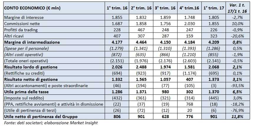 [FLASH] Intesa ha presentato i risultati del primo trimestre 2017, in crescita rispetto ai primi tre mesi del 2016 e superiori alle attese del mercato.