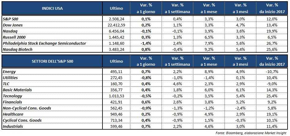 La performance della società di Cupertino appesantisce il settore tecnologico (-0,5%), mentre le prospettive di ulteriori aumenti dei tassi di interesse agevolano la salita dei finanziari (+0,6%), in guadagno in otto delle ultime nove sedute.