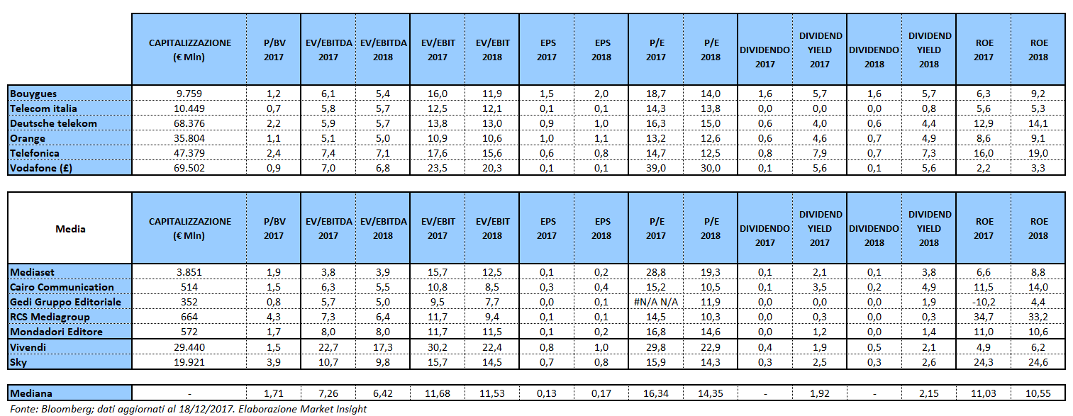 Media – I multipli del settore