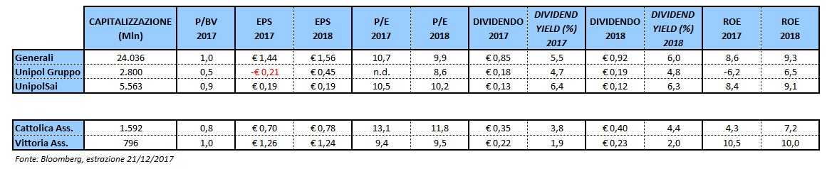 Diamo uno sguardo ai multipli del settore Assicurazioni. Lasciamo spazio ai numeri e alla loro capacità di sintesi, ricordando che ogni singola società ha proprie peculiarità e, pertanto, l’attività di selezione non può prescindere dall’approfondimento di ogni singolo tema d’investimento.