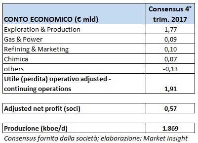 Secondo gli analisti, l’utile operativo adjusted è atteso pari a 1.91 miliardi, l’utile netto rettificato a 570 milioni e la produzione dovrebbe attestarsi a 1.869 milioni kboe/d.