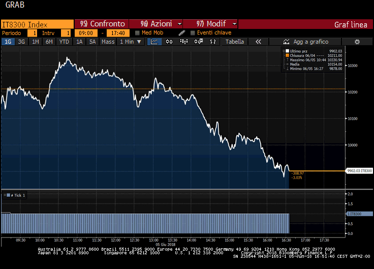 Il settore creditizio ha avvertito la rotta intorno a metà seduta, in concomitanza con il discorso tenuto dal neo premier Giuseppe Conte al Senato in vista dell’ottenimento della fiducia. Il rosso si è poi man mano allargato.