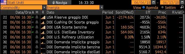 In aumento anche le scorte di benzina di circa 4,6 milioni, rispetto all’incremento di circa 0,2 milioni di barili atteso dagli analisti (+3,8 milioni il dato Api), mentre quelle di distillati sono cresciute di circa 2,2 milioni rispetto all’aumento di circa 0,6 milioni stimato dal consensus (-0,9 milioni il dato Api).