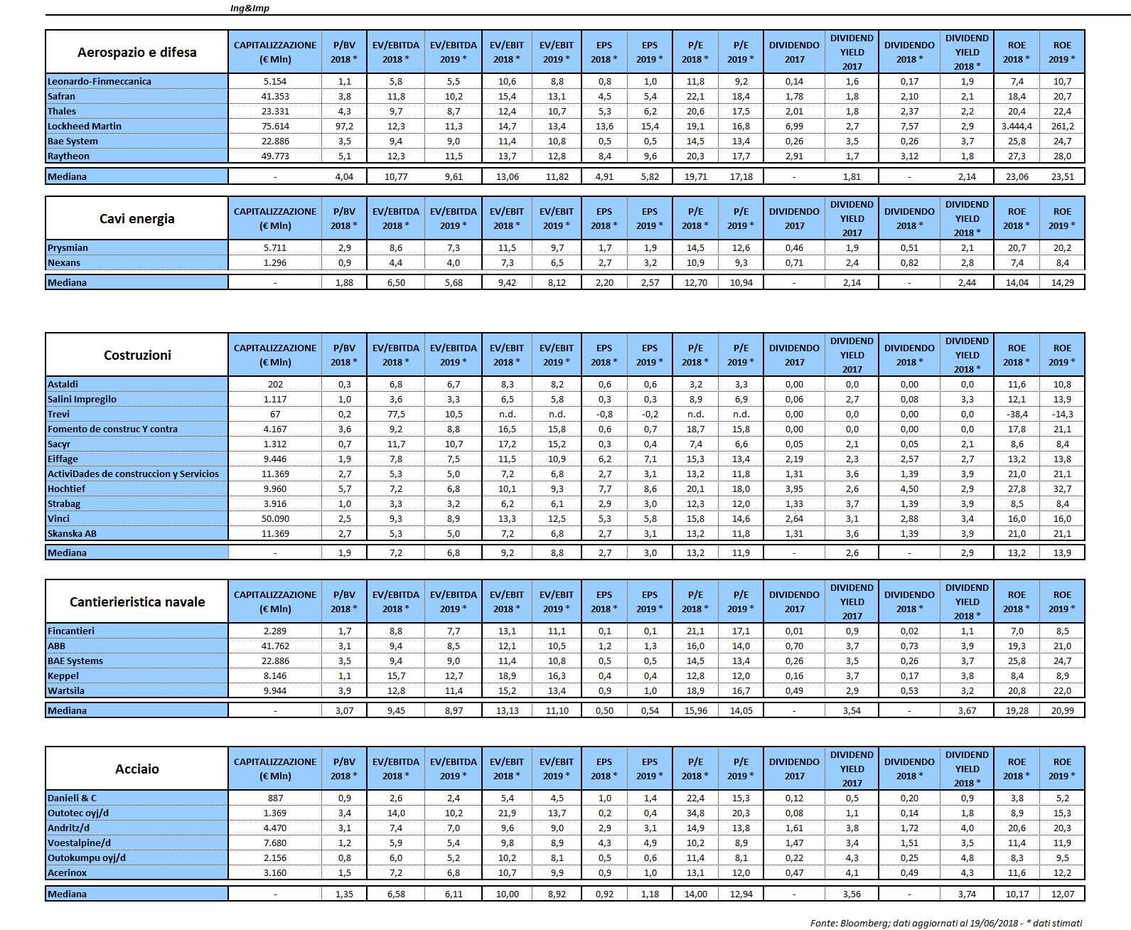 Diamo uno sguardo ai multipli del settore Ingegneria e Impiantistica. Lasciamo spazio ai numeri e alla loro capacità di sintesi, ricordando che ogni singola società ha proprie peculiarità e, pertanto, l’attività di selezione non può prescindere dall’approfondimento di ogni singolo tema di investimento.