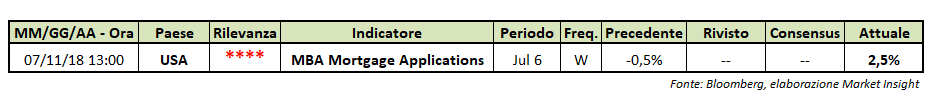 L’indice che misura le nuove richieste di mutui ipotecari presenta una crescita del 2,5% nell’ultima settimana che si è conclusa il 6 luglio.