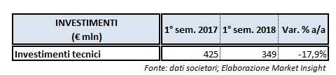Gli investimenti del 1° semestre del 2018 sono stati pari a 349 milioni, in diminuzione del 17,9% su base annua e relativi principalmente ai settori trasporto e stoccaggio di gas naturale.