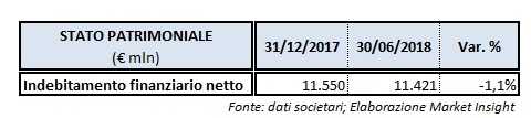 Sul fronte dello stato patrimoniale, Snam ha registrato un indebitamento finanziario netto al 30 giugno del 2018 pari a 11,42 miliardi, sostanzialmente in linea con il dato di fine 2017.