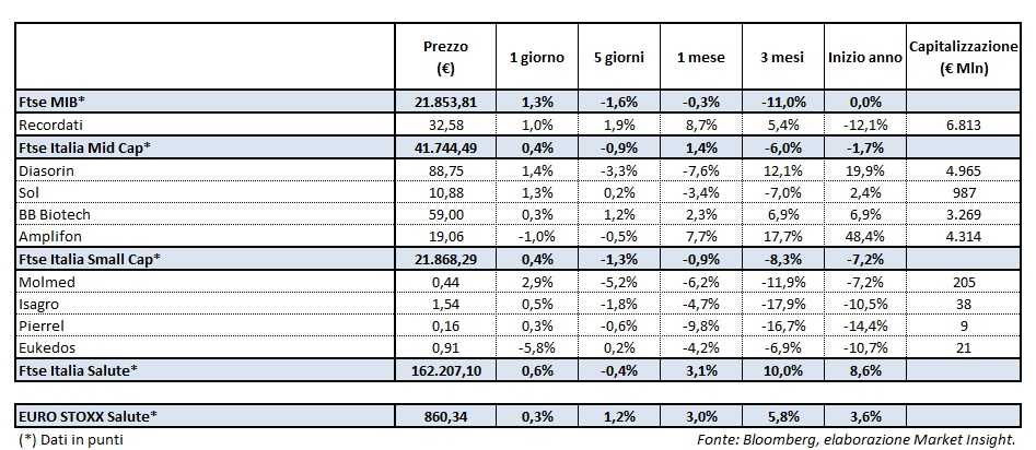 Ieri il Ftse Italia Salute ha registrato un +0,6%, facendo meglio del corrispondente europeo (+0,3%) ma al di sotto del Ftse Mib (+1,3%).