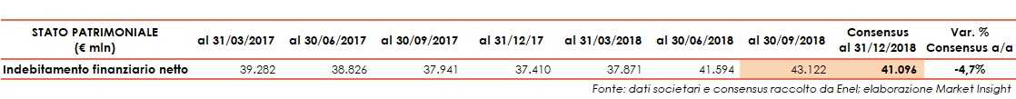 Sul fronte patrimoniale, l’indebitamento finanziario netto al 31 dicembre 2018 è previsto pari a 41,1 miliardi, in calo del 4,7% rispetto al 30 settembre 2018.