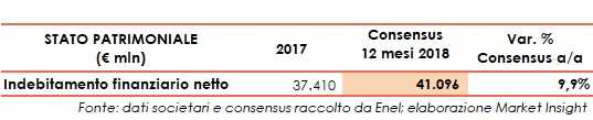 L’indebitamento finanziario netto dovrebbe esprimersi in 41,1 miliardi in aumento del 9,9% rispetto al dato di fine 2017 per effetto delle operazioni straordinarie realizzate nel corso dell’anno.