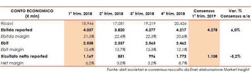 Nel dettaglio, sulla base delle stime degli esperti raccolte dalla società, l’Ebitda reported dovrebbe risultare pari a circa 4,3 miliardi, in crescita del 6% rispetto all’analogo periodo del 2018.