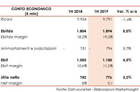 Un andamento che ha portato il management a confermare la guidance fornita per l’interno 2019: Ebitda a 3,7 miliardi, Utile netto a 1,5 miliardi.