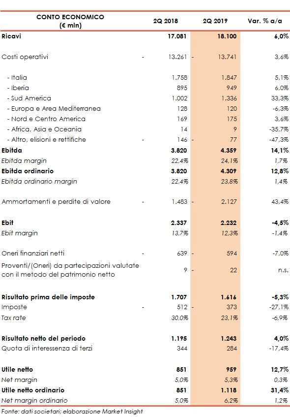 Spesati minori oneri finanziari netti (-7% a 594 milioni), oneri da partecipazioni valutate al patrimonio netto (22 milioni, a fronte dei 9 milioni di proventi del corrispondente periodo 2018), minori imposte (-27,1% a 373 milioni), l’utile netto del gruppo è cresciuto del 12,7% a 959 milioni. Al netto delle partite relative a operazioni straordinarie, l’utile netto ordinario è balzato del 31,4% a 1,1 miliardi.