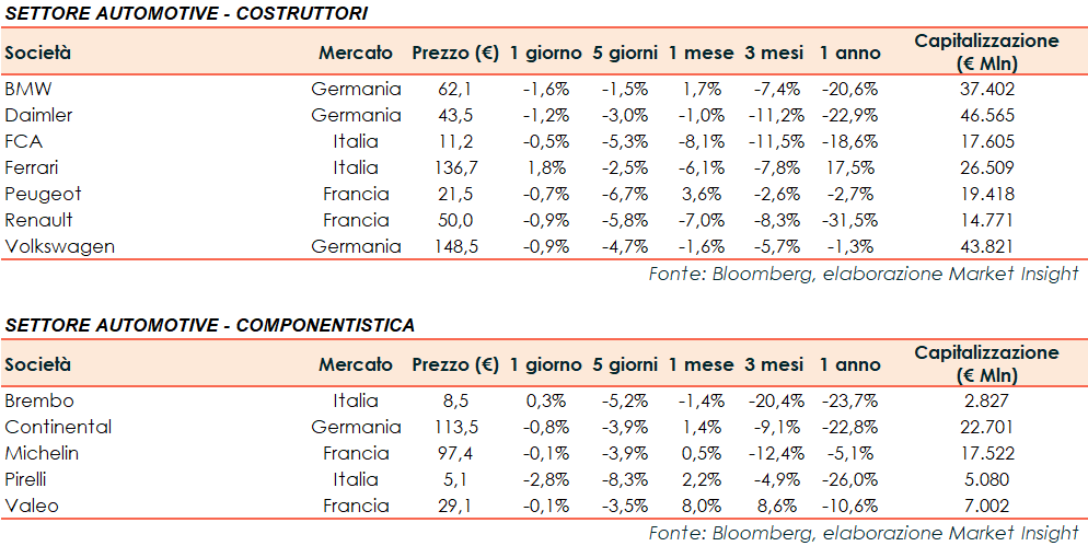Si riporta l’andamento odierno dei principali titoli internazionali del settore Automotive: