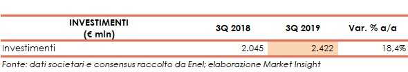 Dopo la contabilizzazione di ammortamenti e perdite di valore triplicati a 5,3 miliardi (vs 1,7 miliardi del 3Q18) per l’adeguamento del valore contabile di taluni impianti a carbone in particolare in Spagna, a causa dell’andamento negativo del prezzo delle commodity e del mercato delle emissioni di CO2, l’Ebit passa in negativo per 1 miliardo (vs 2,6 miliardi del 3Q18).