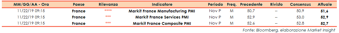 Il Markit Pmi Servizi mostra un dato preliminare di 52,9 punti, al di sotto del consensus (53 punti) ma in linea con il dato di ottobre.