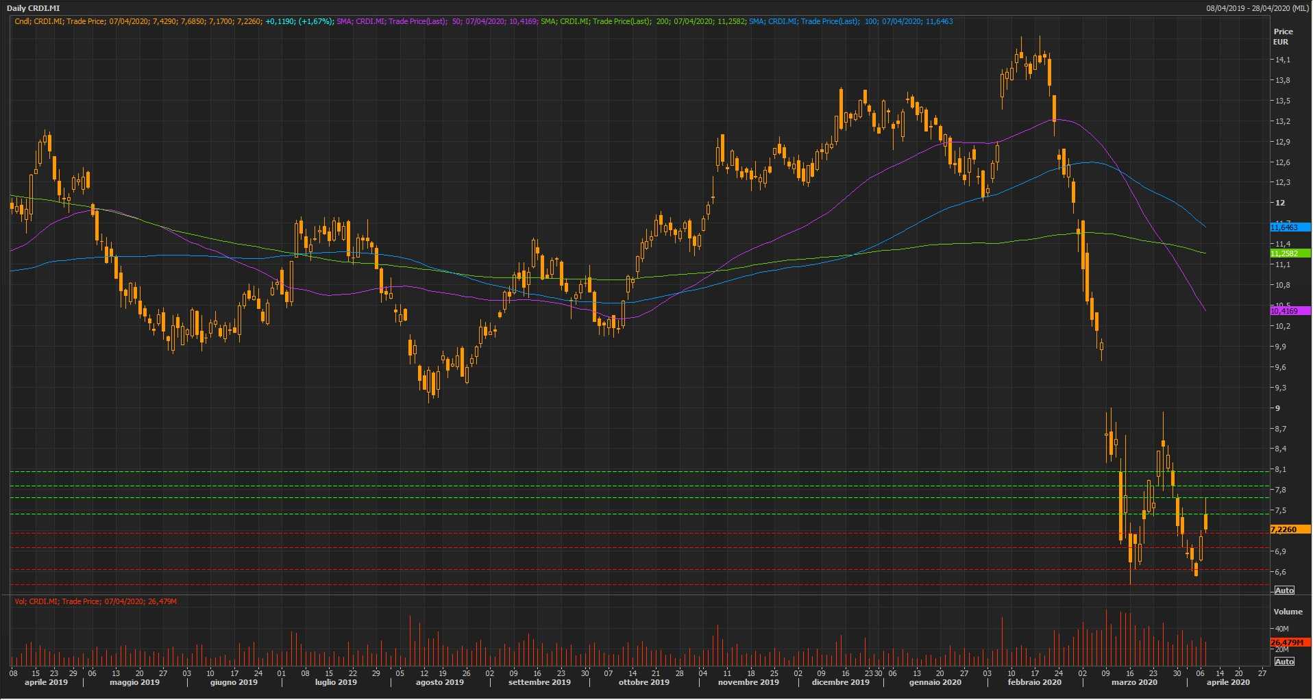 -8,4% è la potenziale flessione rispetto al terzo supporto a 6,643 euro;