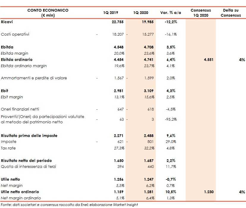 Il colosso elettrico italiano ha alzato il velo sui risultati consolidati dei primi tre mesi 2020 che hanno superato le stime degli analisti. Inoltre sono stati confermati i target 2020-2022, dividendi compresi. Limitati gli effetti connessi all’emergenza Covid-19.