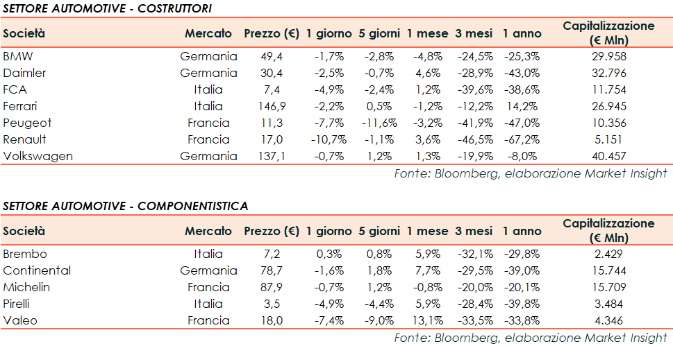 Si riporta l’andamento odierno dei principali titoli internazionali del settore Automotive: