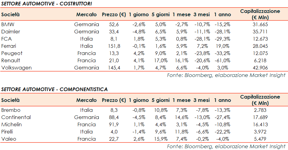 Si riporta l’andamento odierno dei principali titoli internazionali del settore Automotive: