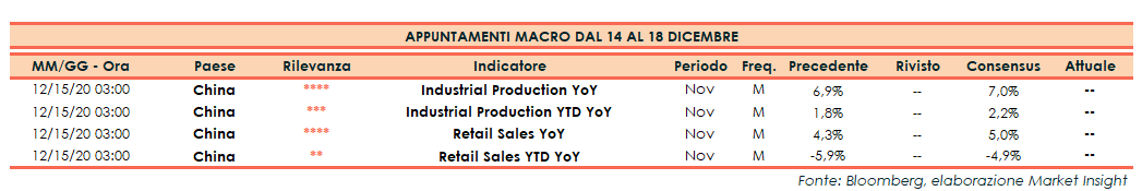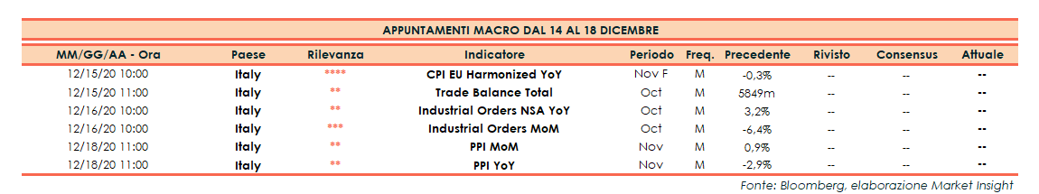 Di seguito gli appuntamenti macroeconomici in programma per la prossima settimana.