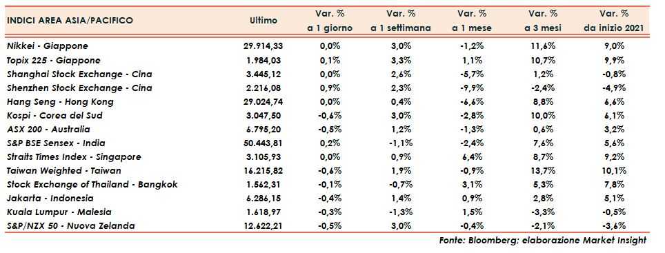 Il tutto dopo le seguenti chiusure di ieri a Wall Street: Dow Jones (-0,4%), S&P 500 (-0,2%) e Nasdaq (+0,1%).