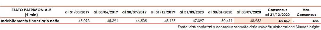 Infine, sul fronte patrimoniale, l’indebitamento finanziario netto al 31 dicembre 2020 è stimato pari a circa 48,47 miliardi, in aumento rispetto ai 45,18 miliardi di dicembre 2019.