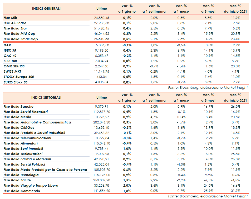 Il sentiment degli operatori resta diviso tra l’ottimismo per la ripresa dell’economia, i timori legati alle pressioni inflazionistiche e le preoccupazioni per la nuova ondata di contagi in alcune regioni asiatiche.