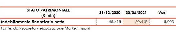 L’indebitamento finanziario netto al 30 giugno 2021 cifra in 50.418 milioni (45.415 milioni di fine 2020, +11%).