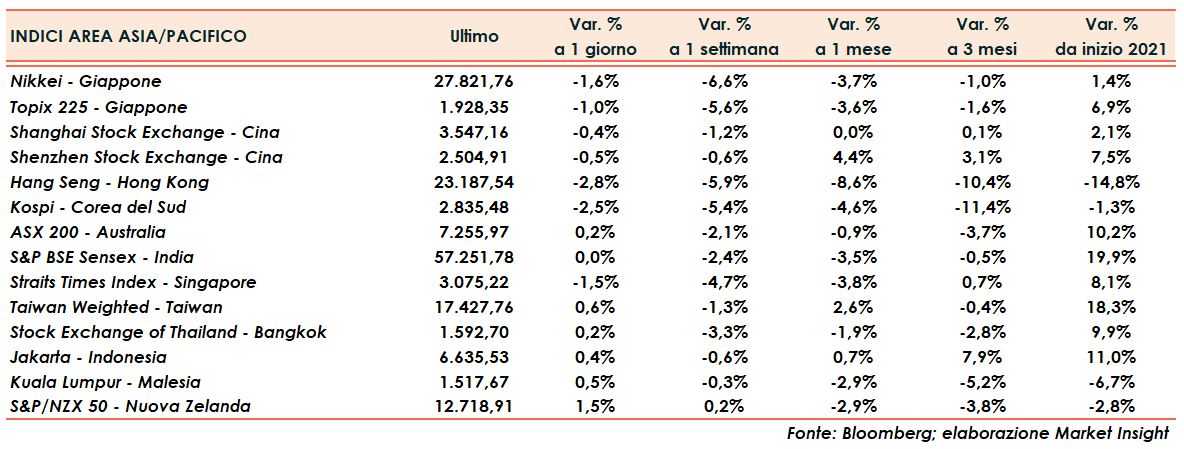 Tornando ai listini asiatici, in Cina Shanghai e Shenzhen cedono rispettivamente lo 0,4% e lo 0,5%. Hong Kong a -2,8%.