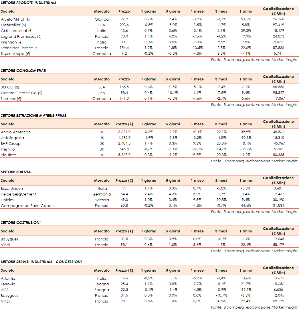 Si riporta l’andamento odierno dei principali titoli internazionali del settore Industriale.