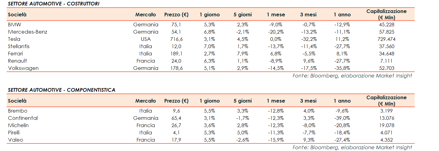Si riporta l’andamento odierno dei principali titoli internazionali del settore automotive: