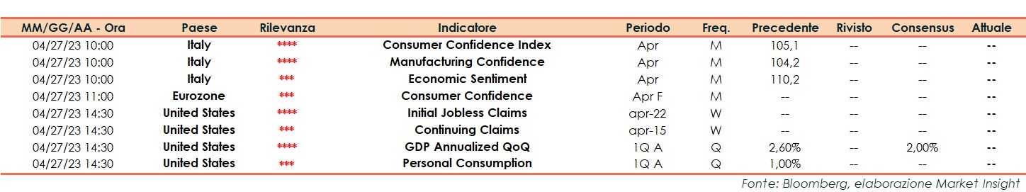 Ore 14:30 Usa: Richieste settimanali sussidi disoccupazione; PIL annualizzato, 1Q 2023 prima lettura.