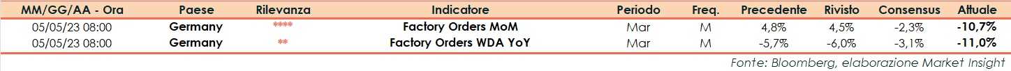 A marzo gli ordini di fabbrica della Germania hanno registrato un netto calo su base mensile del 10,7%, contro il -2,3% stimato dagli analisti e dopo il +4,5% di febbraio (rivisto da +4,8%).