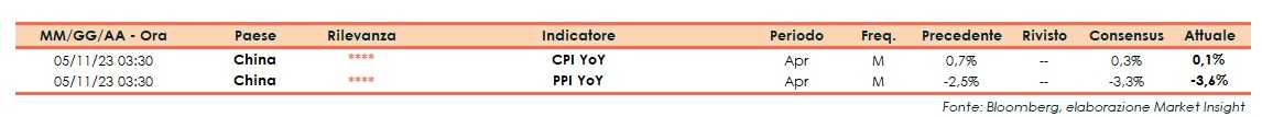 L’Istituto nazionale di statistica della Cina riporta che nel mese di aprile i prezzi al consumo (CPI) hanno segnato un aumento dello 0,1% su base annua, a fronte del +0,3% stimato dagli analisti e al +0,7% di marzo.