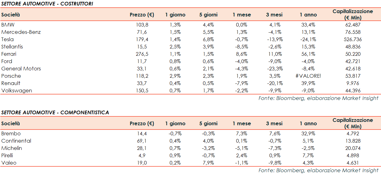Si riporta l’andamento odierno dei principali titoli internazionali del settore auto: