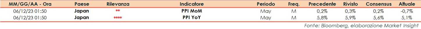 A maggio l’indice dei prezzi alla produzione in Giappone ha riportato una variazione del -0,7% su base mensile, al di sotto del +0,2% previsto dal consensus e del +0,3% del mese precedente (rivisto da +0,2%).
