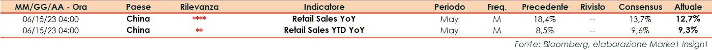 Secondo i dati diffusi dal ministero del Commercio di Pechino, a maggio il dato sulle vendite al dettaglio in Cina ha registrato un aumento del 12,7% annuo, in forte rallentamento rispetto al dato di aprile (+18,4%) e al di sotto delle attese (+13,7%).