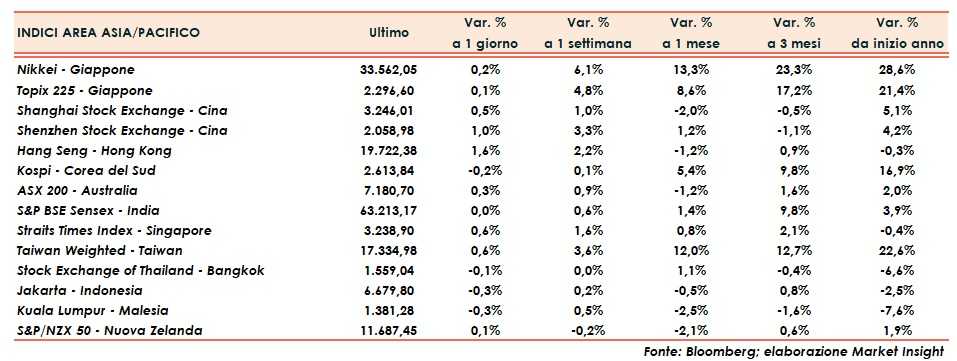 Seduta positiva per i principali indici asiatici dopo la chiusura a due velocità di Wall Street.