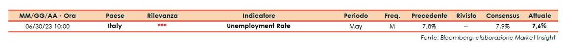 Secondo l’Istat a maggio il tasso di disoccupazione dell’Italia si è attestato al 7,6%, al di sotto rispetto al 7,9% del consensus e del 7,8% del mese precedente.