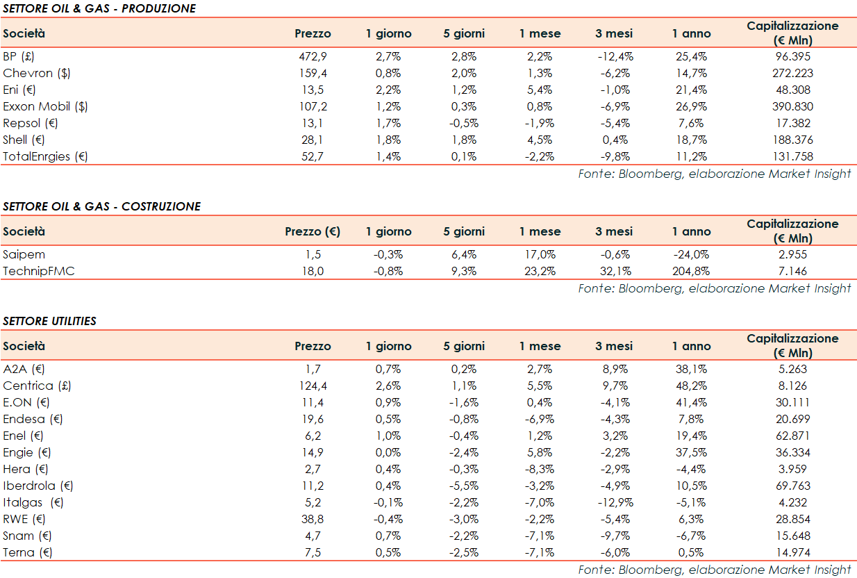 Si riporta l’andamento odierno dei principali titoli internazionali del settore energetico: