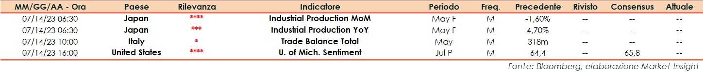 Ore 16:00 Usa: Sentiment Università del Michigan, luglio preliminare.