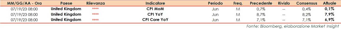 A giugno nel Regno Unito i prezzi al consumo sono aumentati dello 0,1% su base mensile, in rallentamento rispetto al +0,7% di maggio e inferiore alle attese (+0,4%).