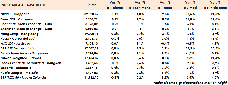 Oltreoceano, il Dow Jones ha segnato un rialzo dello 0,3%, lo S&P500 dello 0,2% mentre il Nasdaq ha chiuso invariato.