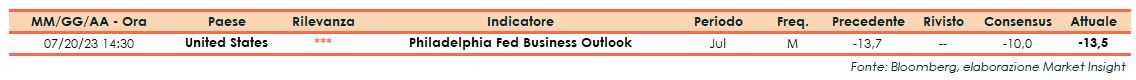 A luglio l’indice di fiducia commerciale dei produttori del distretto di Philadelphia si è attestato a -13,5 punti dai -13,7 punti di giugno. Il consensus indica un valore pari a -10 punti.