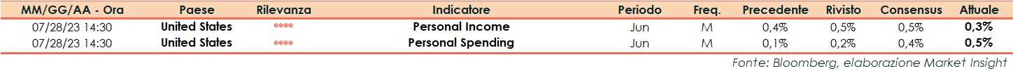 Il report su reddito personale e spesa, prodotto dal Dipartimento del Commercio, misura l’andamento di redditi e spese degli americani, più il tasso di risparmio. E’ un importante indicatore economico, in quanto l’andamento dei redditi incide sul livello dei consumi, che contano per il 70% del prodotto interno lordo degli Stati Uniti.
