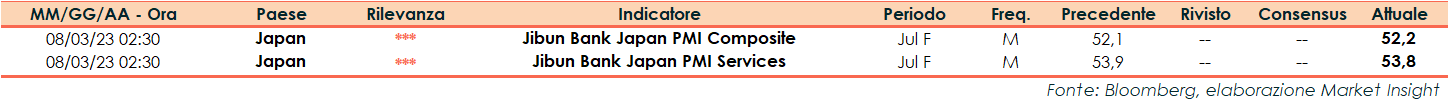 Il dato finale di luglio del PMI servizi della Jibun Bank giapponese si è attestato a 53,8 punti, lievemente al di sotto rispetto del dato preliminare (53,8).